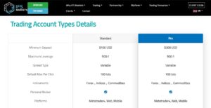 Standard – Available from a $ 100 top-up. The maximum leverage is 1: 500. Variable type spreads. Among the goods, it is proposed to use currency pairs, stock indices, and raw materials. A personal consultant is available.