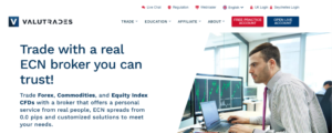 The www.valutrades.com website publishes information on competitive advantages that a potential client may be interested in. The firm offers to trade various financial assets, including commodities, stock indices, CFDs and other instruments. Thanks to the use of ECN technologies, spreads start from 0 pips. The trader can count on extremely fast order transfers, instant buying or selling of products.